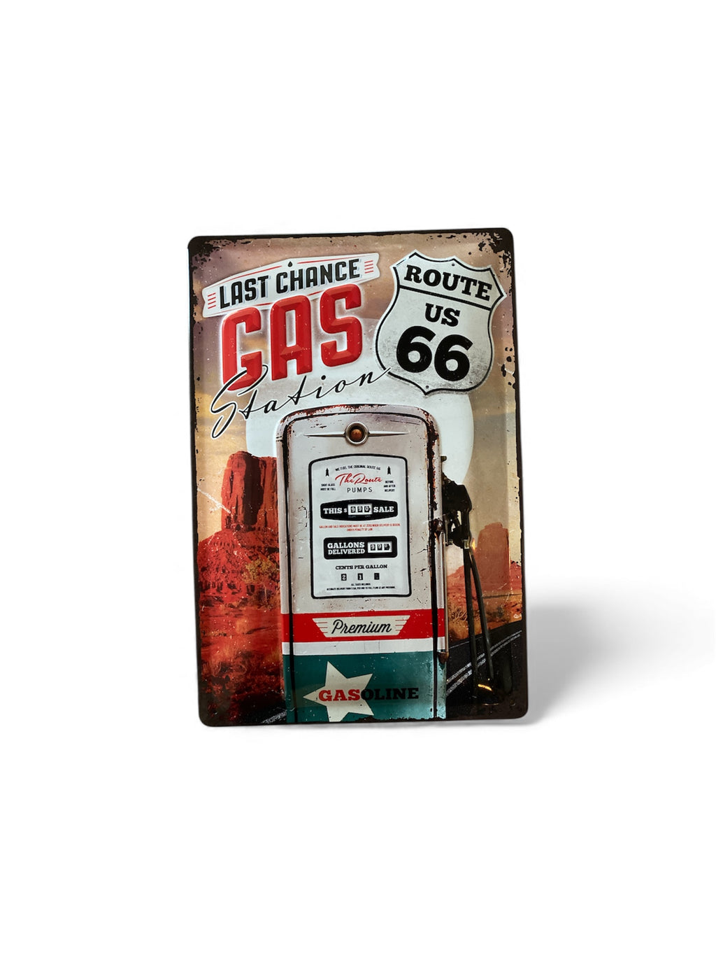 Metalen mancave reclamebord Route 66 Gas Station met reliëf 20x30 cm